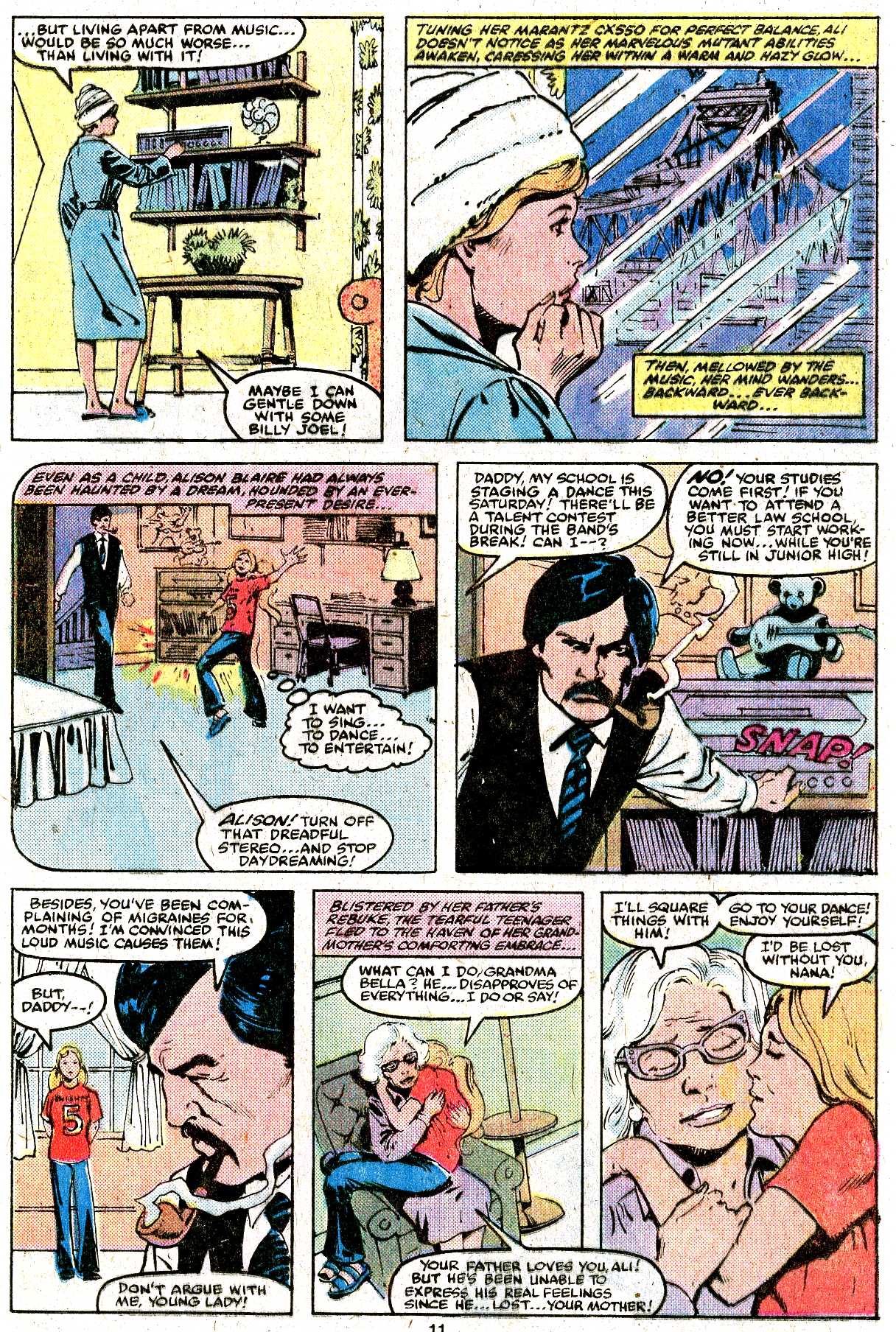At home, Dazzler monologues how her life is going, her father cast her out for not being a lawyer, she’s broke and more than a little lonely. Knowing few people who understand, she calls the X-Men. Storm answers and asks if Dazzler wants to join up. Shocked by the question, Dazzler hangs up as soon as she can and reflects on her life so far. We get the single dad doing his best, but not understanding his daughter, we get a bit of a mutant power origin and we see her father turn his back on her, when she refuses to go to law school at his behest. She becomes Dazzler shortly after this and wants to keep her music career alive.