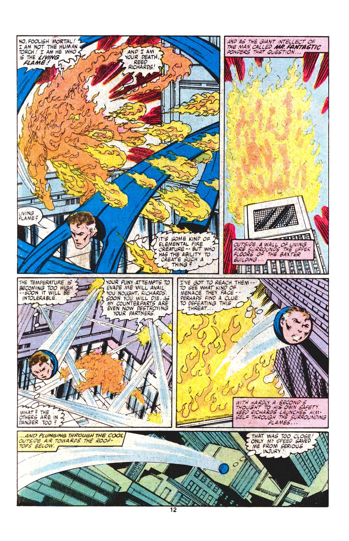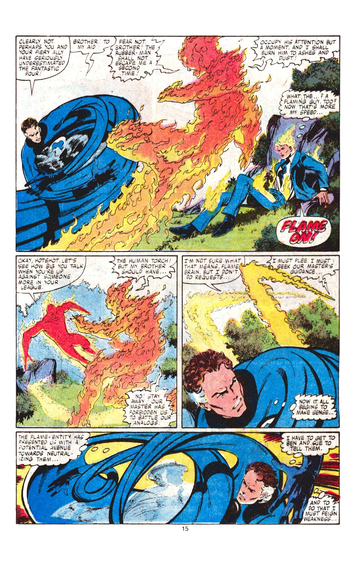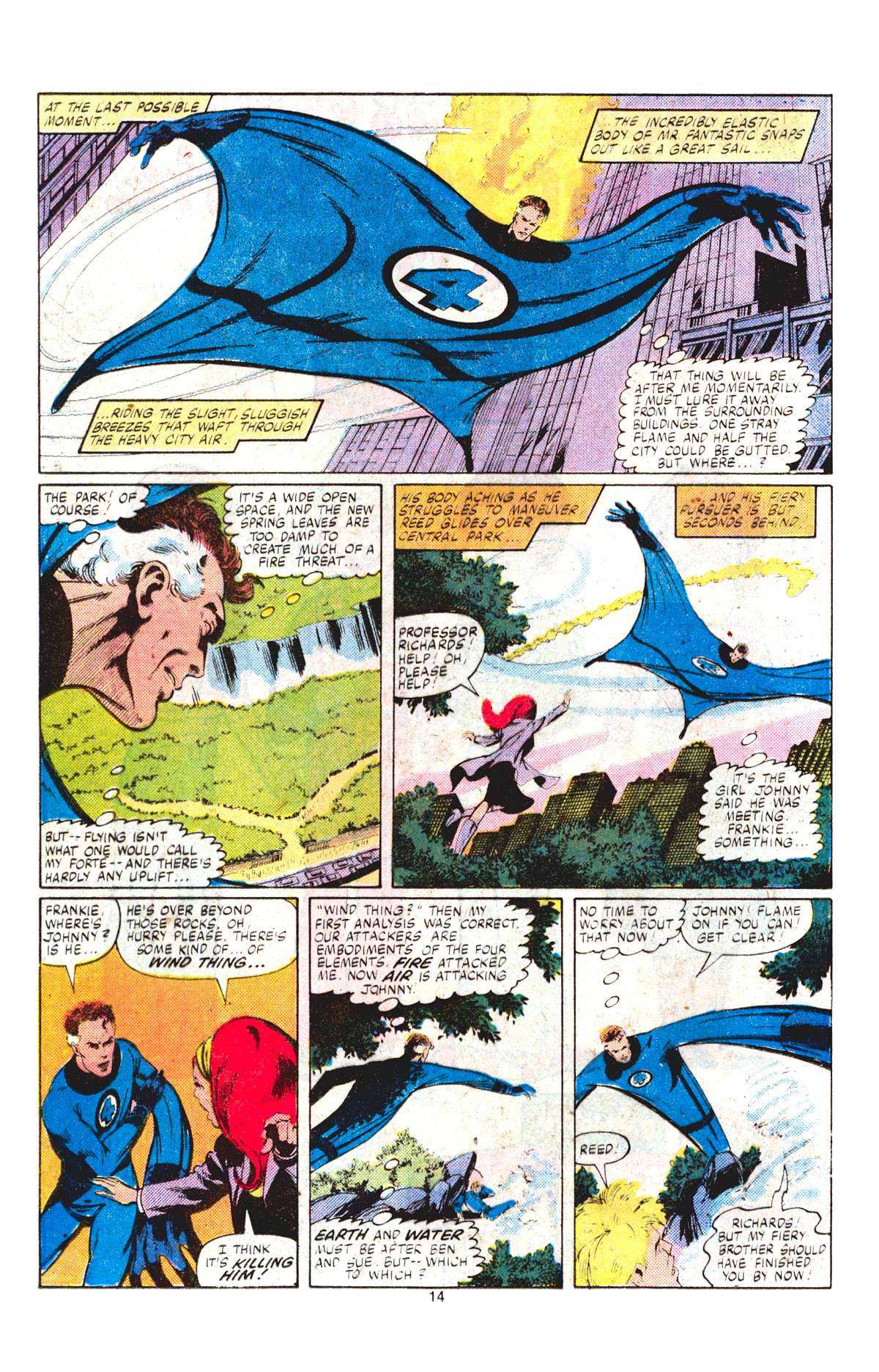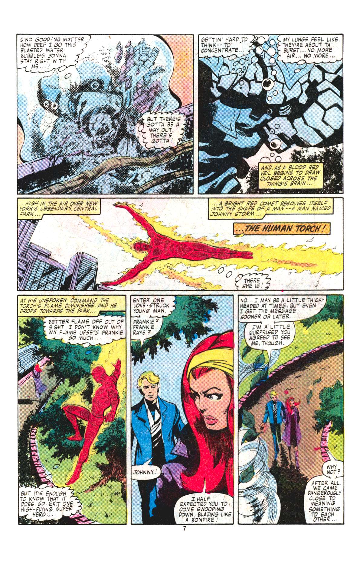 Anyway, he conjures up four elemental creatures who seek and destroy the Fantastic Four. First an earth elemental finds Susan (Invisible Girl) Richards, who is getting a hair cut. When the hairdressing staff leg it, Sue makes her costume visible and ditches her usual clothes. Now lets think about that for a second, she’s wearing a full set of clothes, over a spandex (or unstable molecular fabric equivalent) jumpsuit. Imagine how hot that’d be. All I’m saying is, I’d not be down-wind. As this is happening, a water creature attacks Ben (The Thing) Grimm while he is on a date with long suffering girlfriend Alicia Masters. A wind creature attacks Johnny (The Human Torch) Storm while he is trying to profess his love for Frankie Raye, who is hoping he will get the hint and back off, we all know Johnny, that’s not too likely now is it. At the Baxter Building, Reed (Mr Fantastic) Richards is faced by a fire creature and starts to do the maths.