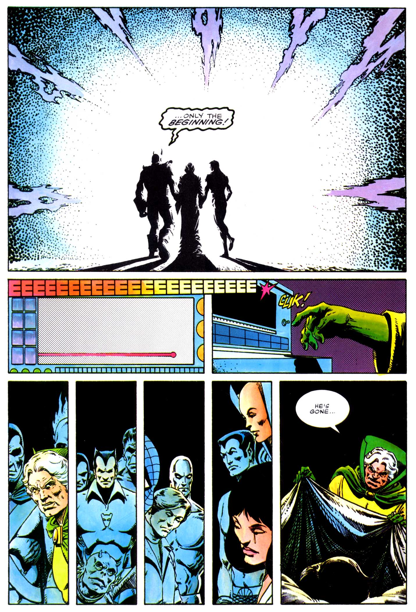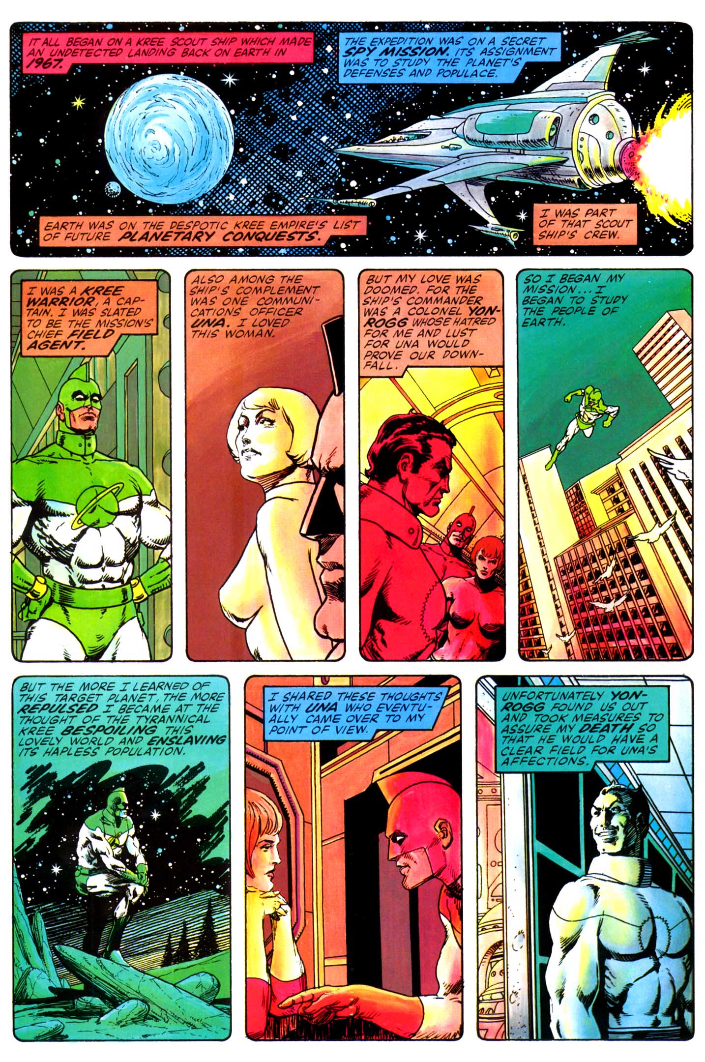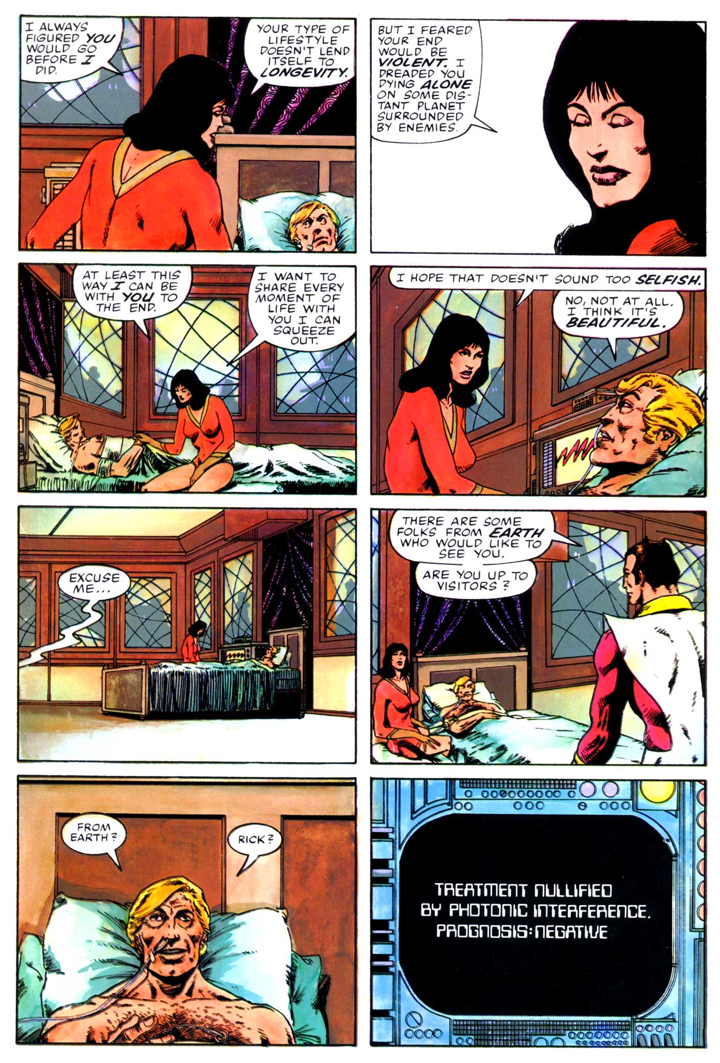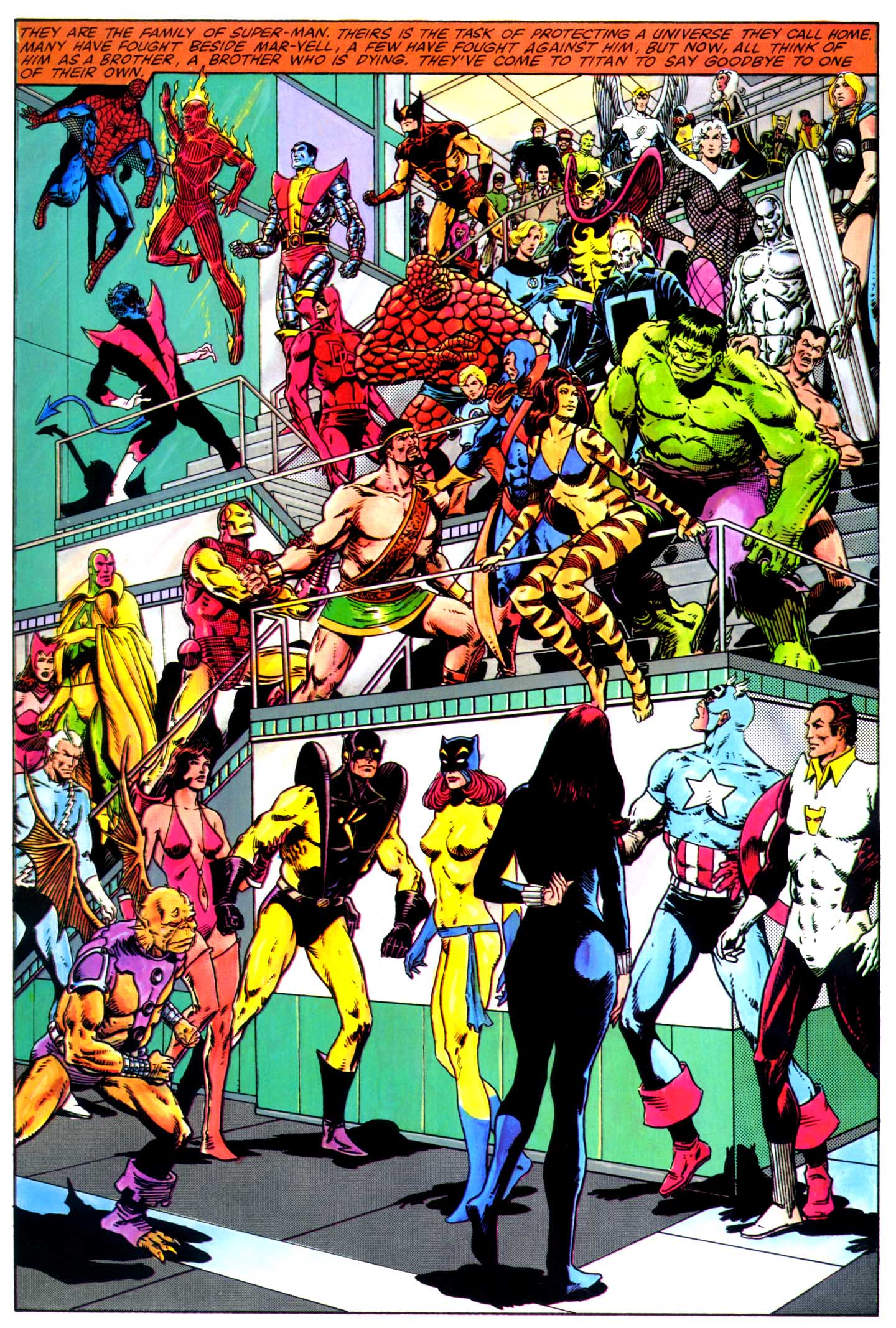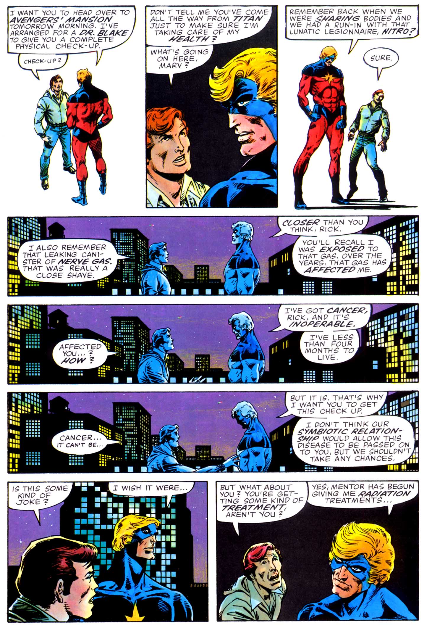 Mar Vell returns to his story, telling of his being bound to Rick Jones and their association with the Avengers, leading to the defeat and death of Thanos. Mar Vell flies to Earth to see Rick, to see if the cancer spread through the symbiosis they had at the time of exposure. He then tells Rick the prognosis, Rick handles it badly. Rick turns to the Avengers, who are unable to help, but that isn’t good enough for Rick. All over the universe, everyone reacts to the news of Mar Vell’s imminent death in their own way. Help is sent, cures are tried, but to no avail. Mar Vell asks that Eros take care of Elysius, when he has passed.