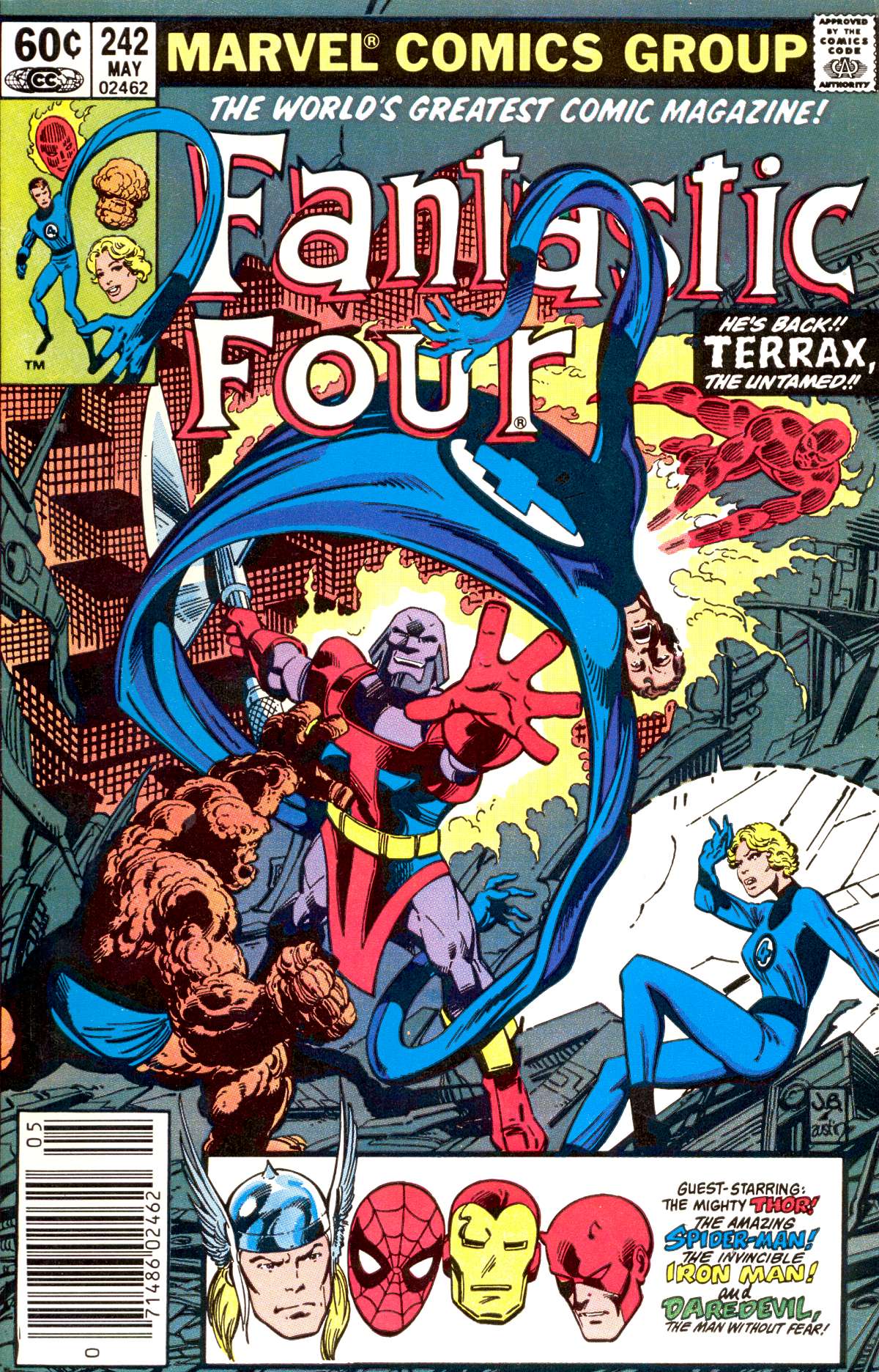 Synopsis: Fantastic Four 242 was written and drawn by John Byrne and opens with Terrax the Tamer flying towards Earth on an asteroid, seemingly fleeing his post as herald of Galactus. In Manhattan, the Fantastic Four are enjoying the winter season, Reed (Mr Fantastic) Richards, Sue (the Invisible Girl) Richards and their son Franklin are putting the christmas decorations away, also trying to prevent Franklin from destroying the room with a rocket he found, (Great parenting there Reed) Sue finds the time to complain about Reed’s practical thinking about using an artificial christmas tree.