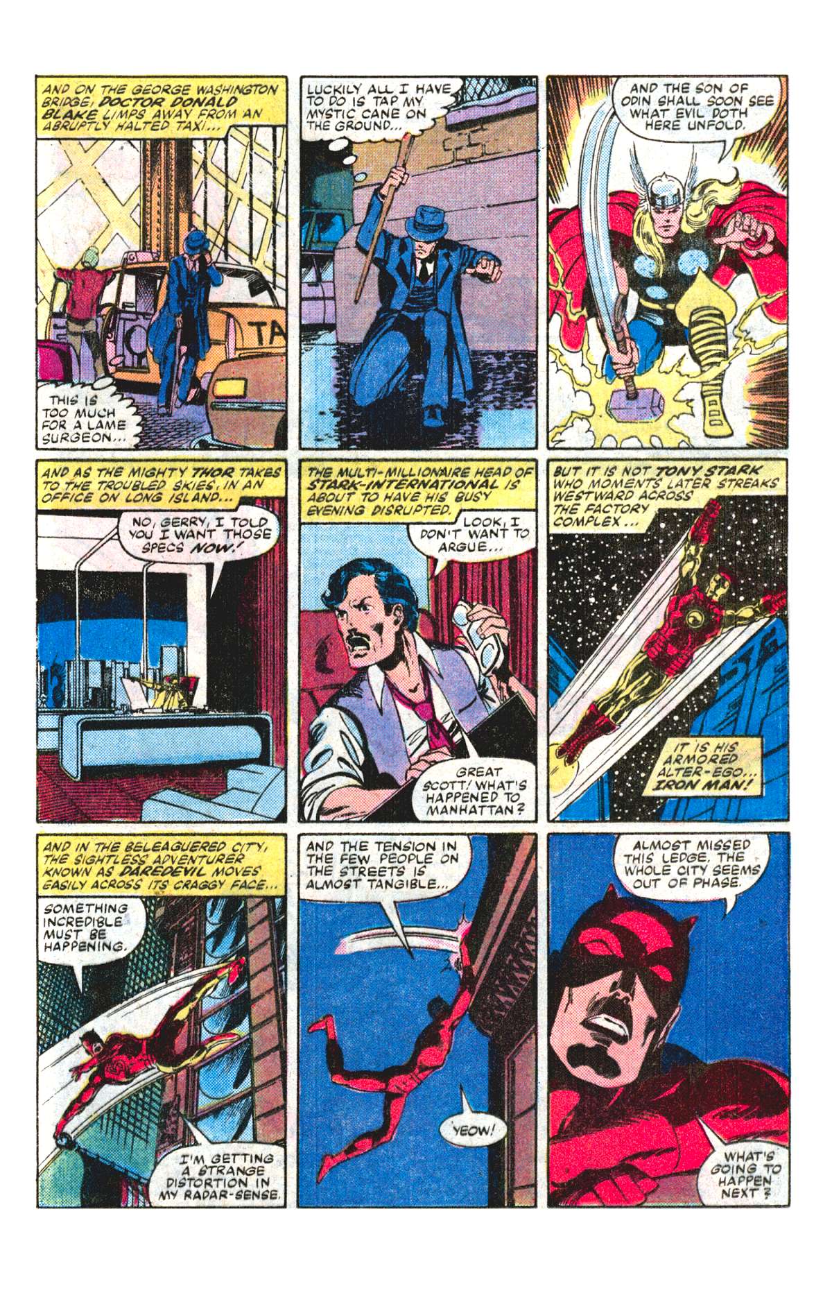 Elsewhere in Queens, Peter (Spider-Man) Parker is alarmed by his spider-sense going off, Dr Don Blake see’s the disturbance in the air and slams his cane down, becoming the mighty Thor and on Long Island, Tony (Iron Man) Stark see’s what’s going on and heads out to investigate. Even Daredevil notices that the city isn’t as it should be.
