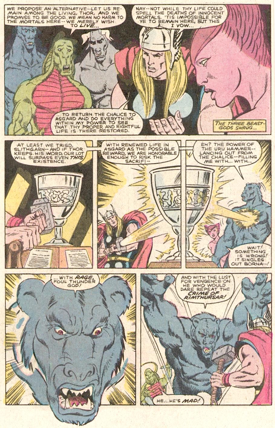 We then learn that Rimthusar wanted to use the menagerie in war against Odin, centuries before Thor’s birth and when they denied him, he slaughtered them and used magic to lock their souls into the chalice, which he threw towards Midgard/Earth. Using the power of his hammer Mjolnir, Thor tries to put them back and his failure to do so causes another fight, this time with Borna. Thor decides not to use his hammer as he believes Borna is bewitched, but instead punches the s**t out of him. They all realise they can’t do as they planned, some darker magic is at work, Asgardian magic, leaving Thor to know who is likely to be behind this, his brother Loki.