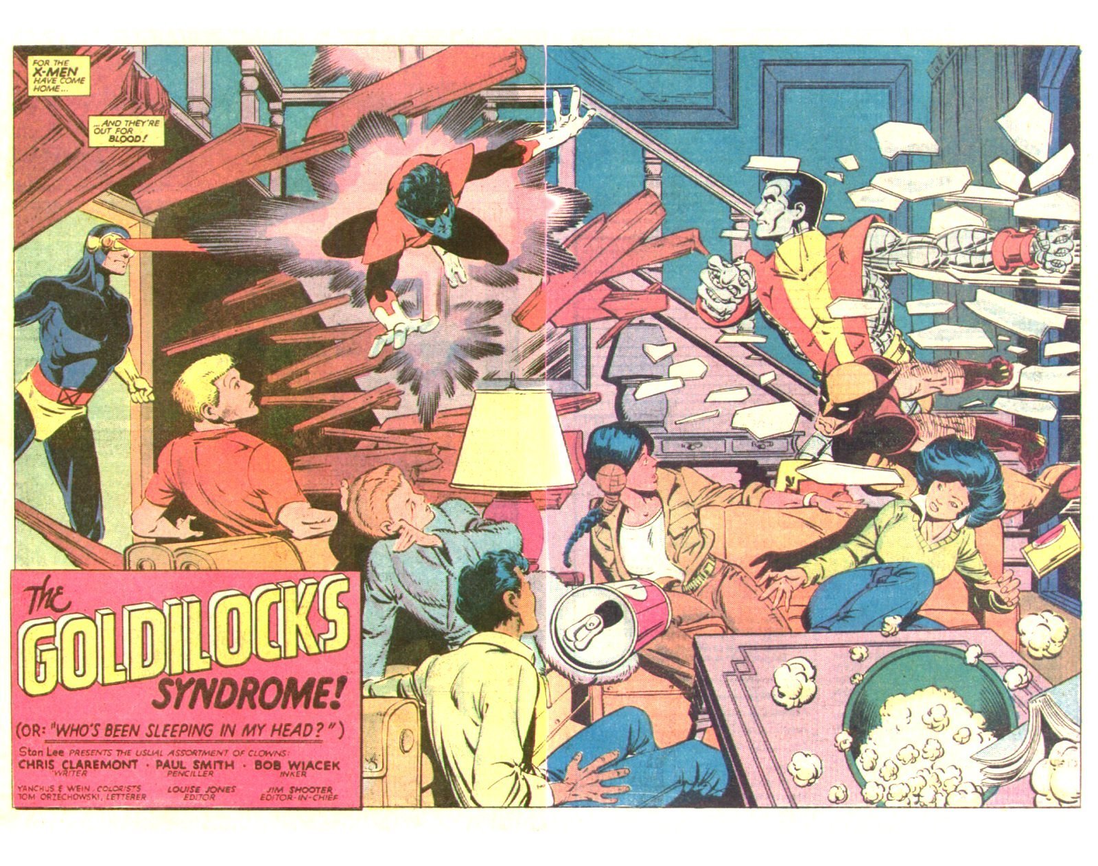 Synopsis: X-Men 187 was written by Chris Claremont, with art by Paul Smith and Bob Wiacek and opens with the X-Men arriving home from their recent sojourn into space, in pursuit of Professor X, who has been infected with a Brood Queen egg and is changing into a Brood. By this point, the X-Men are Scott (Cyclops) Summers, Ororo (Storm) Munro, Kurt (Nightcrawler) Wagner, Piotr (Colossus) Rasputin, Kitty (Shadowcat) Pryde, Wolverine and Carol (Binary) Danvers. In order to get there, they X-Men must battle the New Mutants, who have no idea who any of these people are, since the possessed Professor hasn’t shared the X-Men’s existence with his new students. The New Mutants present being Sam (Cannonball) Guthrie, Roberto (Sunspot) DaCosta, Rahne (Wolfsbane) Sinclair, Xian (Karma) Coy Manh and Danielle (Mirage) Moonstar.