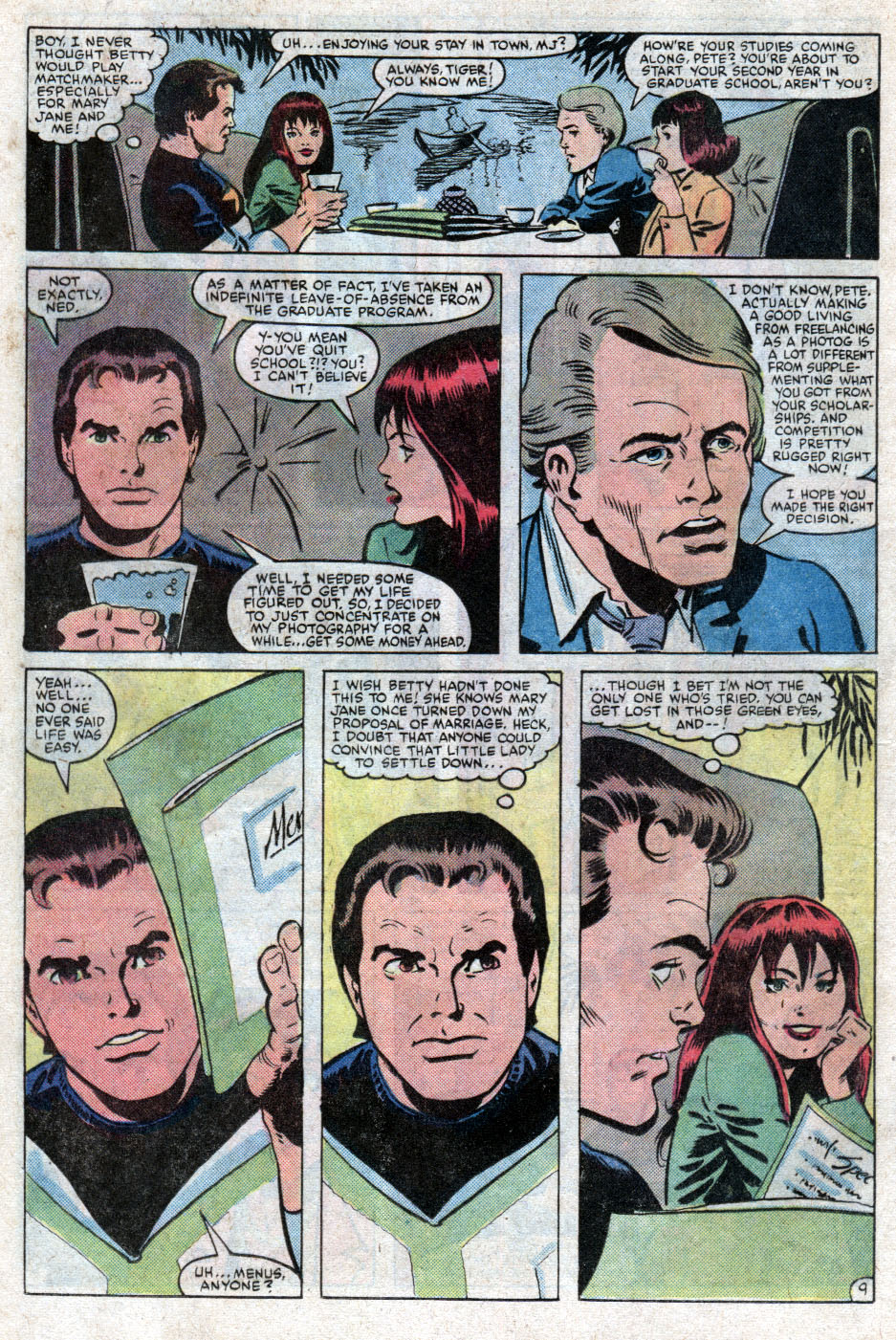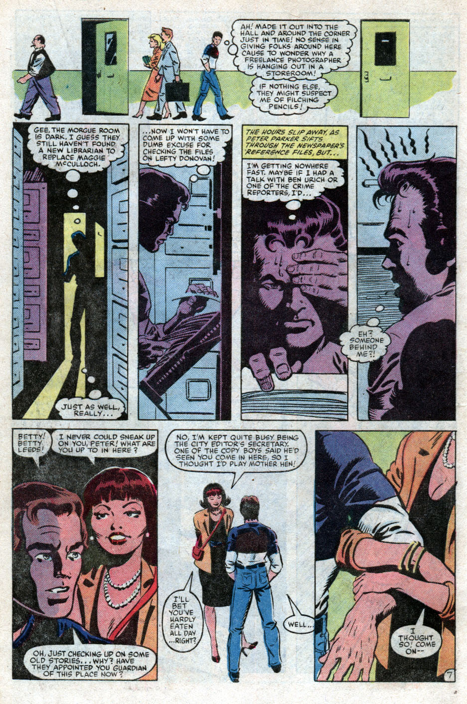 In Long Island, a pair of unseen criminals are experimenting with the Green Goblin formula, one leaves and the other causes the chemical formula to explode, he is badly burned and taken away by paramedics, his accomplice/boss flees after destroying any evidence left in the house. Spider-Man sneaks into the upper floors of the Daily Bugle and looks through the newspaper’s files on Lefty Donovan. Whilst there he meets Betty Leeds, his first ex-girlfriend, who takes him to dinner with her and her husband Ned. Once he gets there, he realises that it’s a set up with him and the woman who said no to his marriage proposal, yeah that’s right, Peter’s ex-girl friend and her husband set Pete up with his ex-fiance and then proceed to critique his plans to quite grad-school and focus on his photography career. Wow, that’s good friendship s**t there.