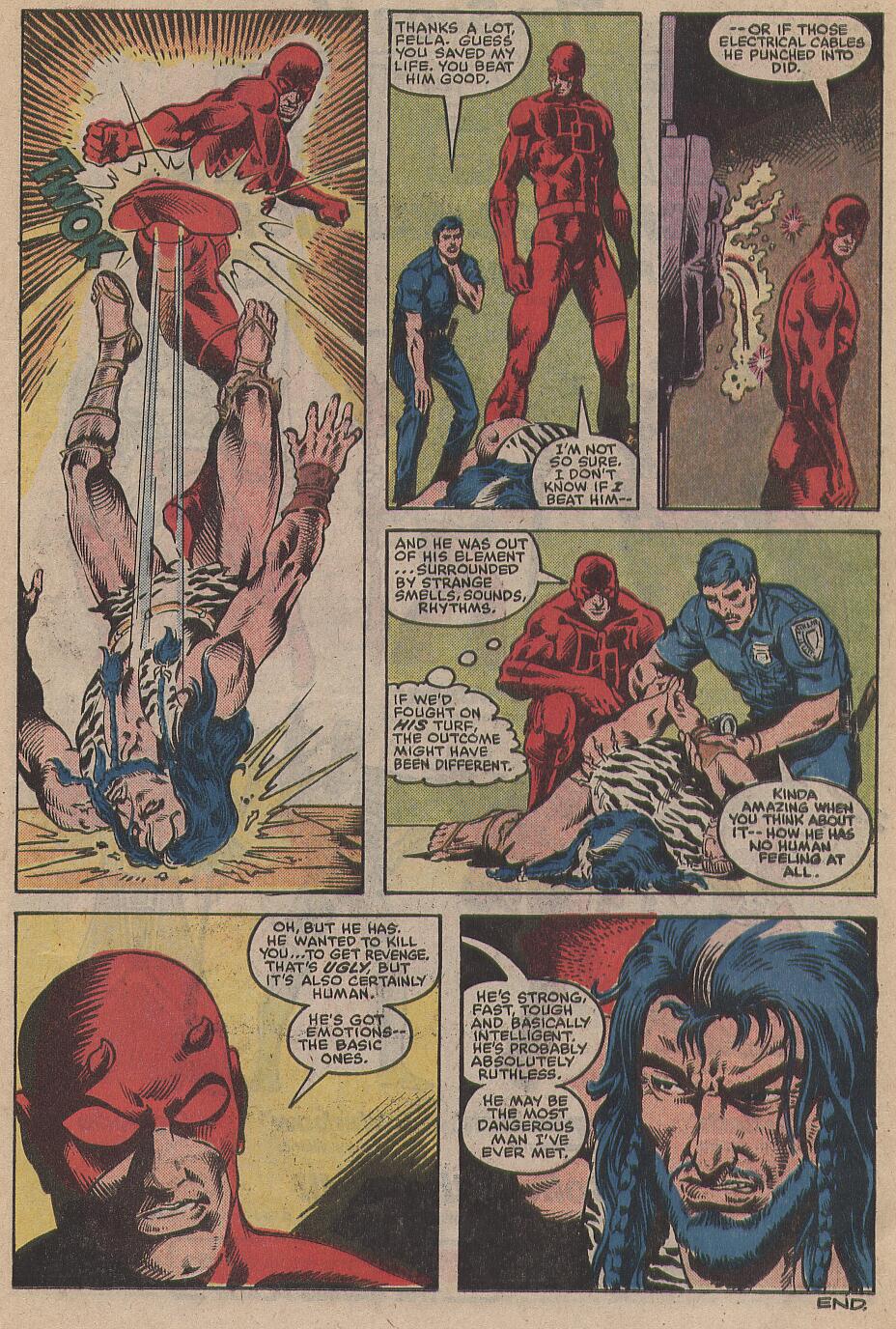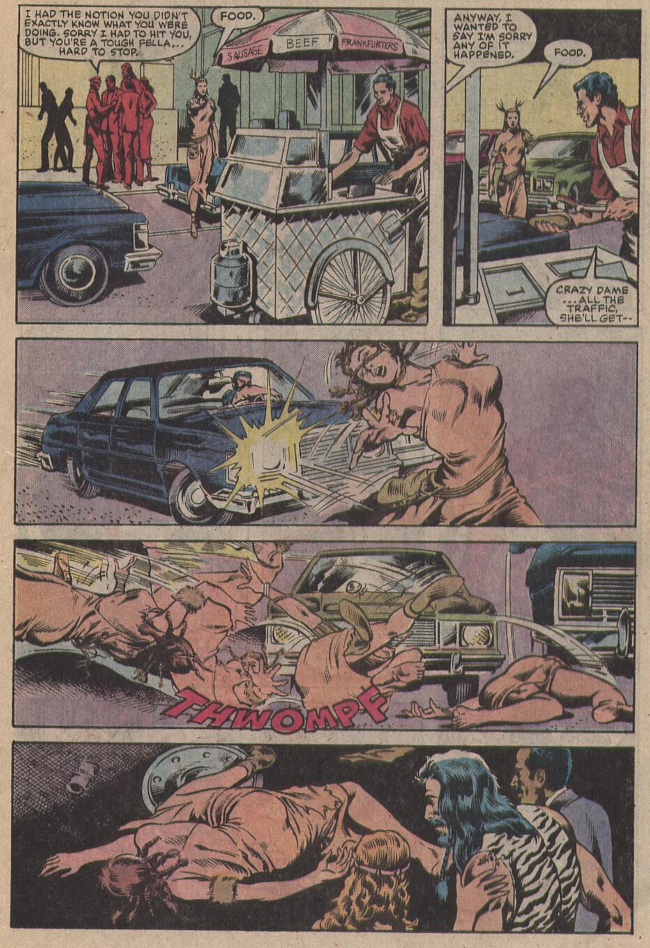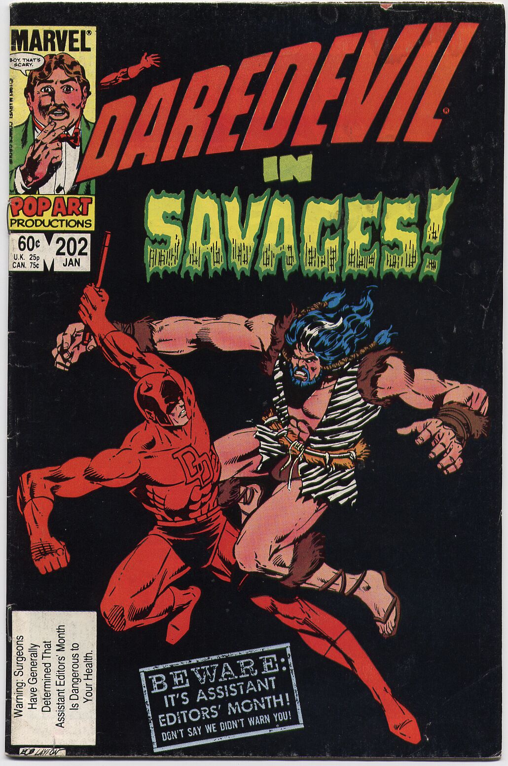 Synopsis: Daredevil 202 was written by Denny O’Neil with art by William Johnson & Danny Bulahadi and opens with Matthew Murdock, in his full Daredevil outfit swinging his way across New York, back to his law offices, during this travel, we get a quick run down of recent events before he gets to work, to find Franklin ‘Foggy’ Nelson, trying to alpha-male his way to be the more popular/successful law partner. As there starts to be a bit of an atmosphere between Matt, Foggy and legal secretary Becky Blake, they are interrupted by Professor (and he does stress that bit) Horatio Piper introduces the chief of the long lost Kinjorge tribe of southern Africa. They are descended from lost British colonists from the 18th Century and after their discovery by Belgian geologists are becoming something of a novelty sensation. Becky notices that they are very unpleasant towards both Becky and Matt, for their handicaps.