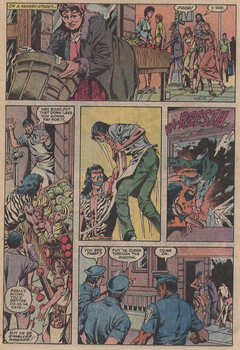 Once outside the building, Chief Micah takes an apple and when asked for money, puts the grocer through the window. A beat cop sees this and tries to intervene, there is another fight and the cop’s mace comes out. Micah is arrested and Franklin & Murdock are called. Foggy gets the judge to agree to bail and when the five of them (Prof Piper, Micah, his two wives and Foggy) leave, one of the wives is hit by a car. Micah doesn’t react at all to this. The police from the previous arrest are also there and they get the chief’s wife to the hospital. Micah gets one of the cops alone and attacks him, holding him out of a window, until Daredevil attacks him. There is a brief fight and, in an unfamiliar place and time, Micah is stopped by a capable and prepared Daredevil. Who points out with Micah’s ruthless nature and cold vengeful rage, he may be the most dangerous man he has ever met.