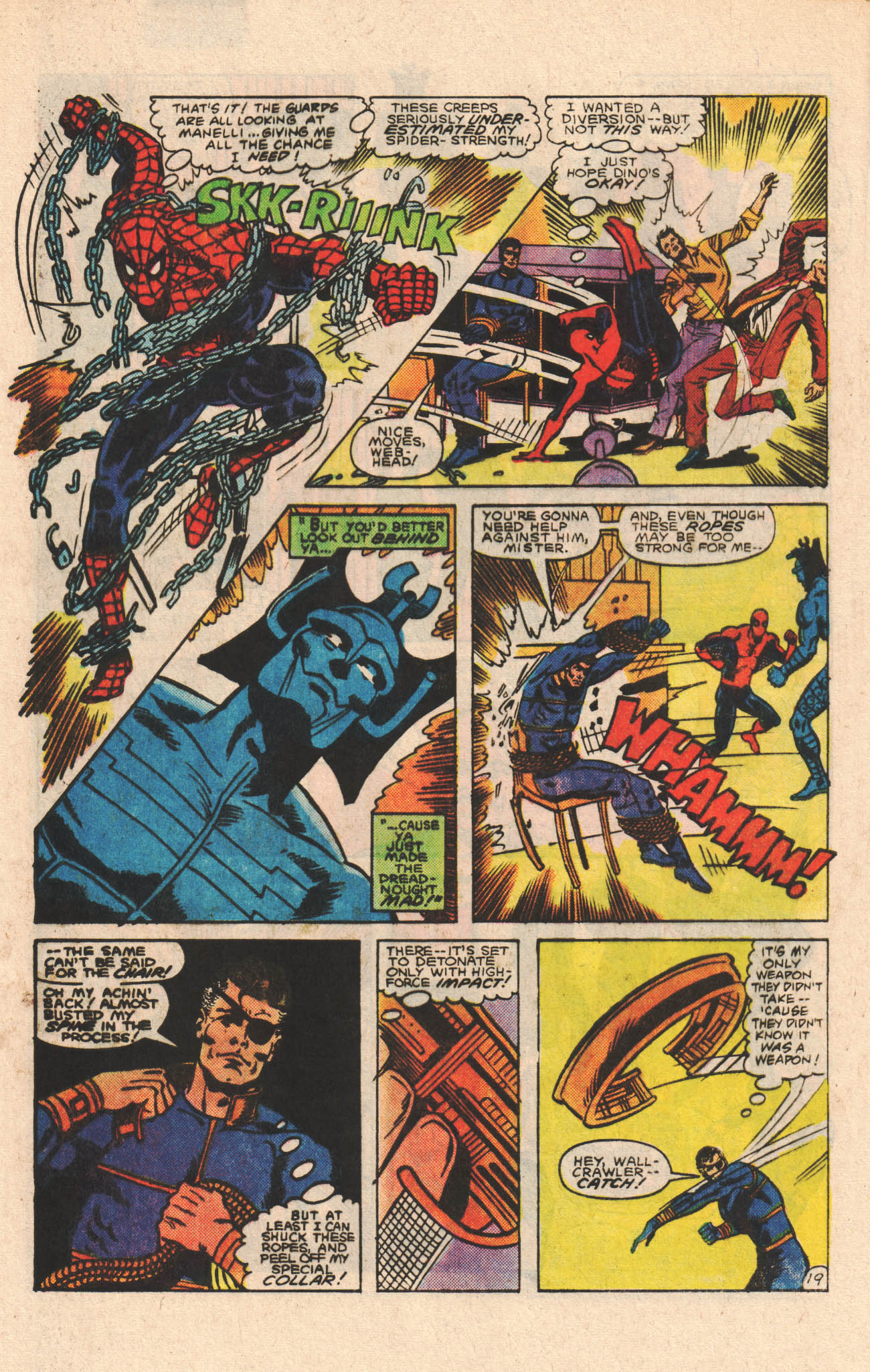 Independently Fury and Spider-Man make their way to the Dreadnought’s and Julie’s location and are both captured, in Spider-Man’s case the capture is helped by Julie herself, who has been in on the whole thing. Dino shows up, Crusetti arrives and does the whole villain explains his plan thing then double crosses Julie and decides to kill her too, since the original plan of ransoming Julie sort of depended on Dino never showing up to rescue her. Dino takes a bullet for Julie, giving enough of a break for Spider-Man to escape his bonds, free Fury and the two of them clean house and destroy the Dreadnought. The story then draws to a close, Peter gets photos of Crusetti’s arrest, Nick goes home and a betrayed Dino tells Julie that he still loves her.