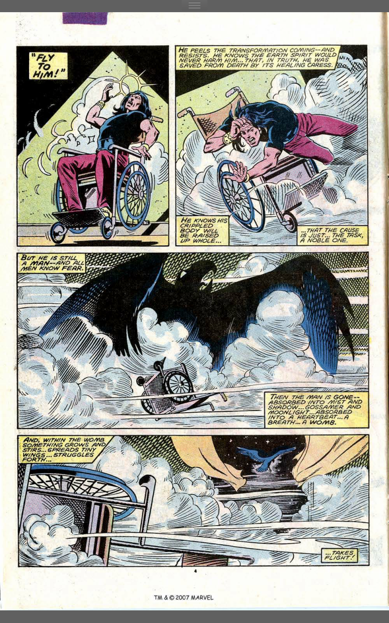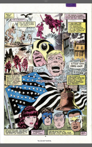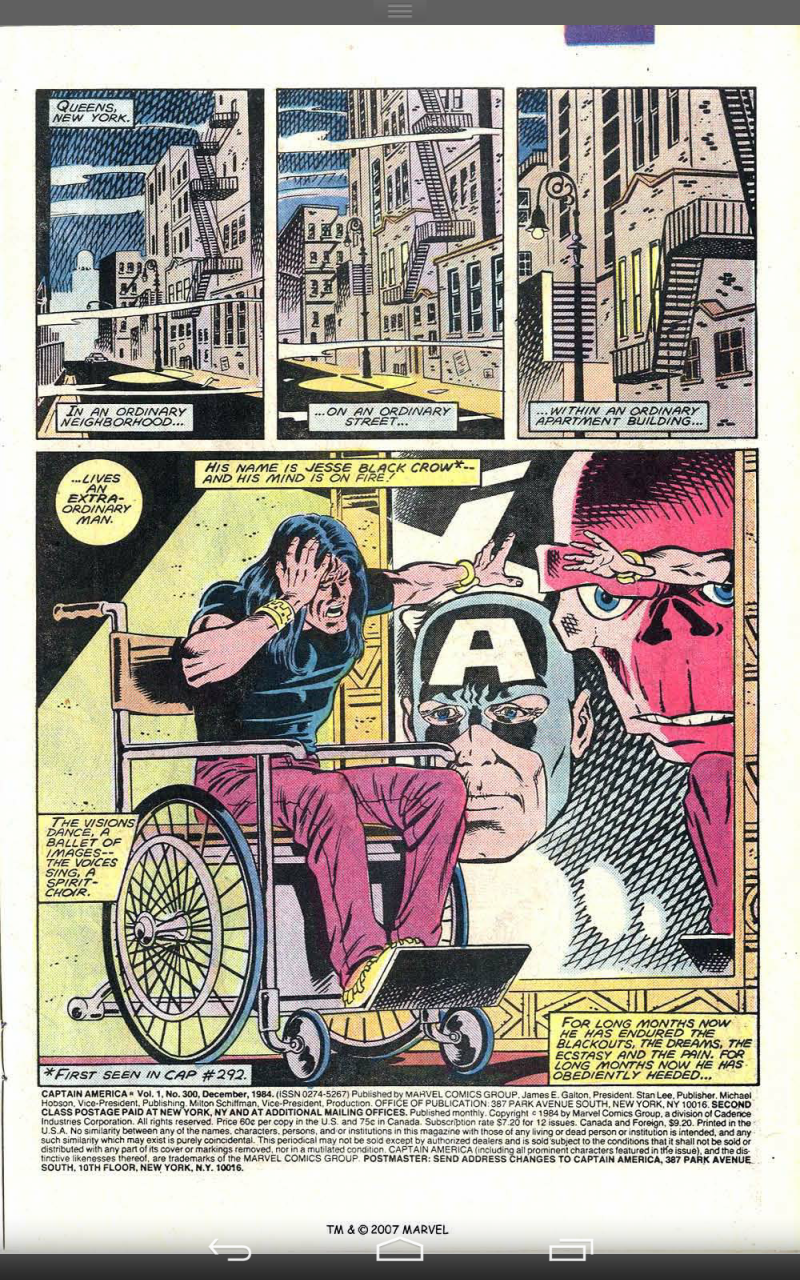 Synopsis: Captain America #300 was written by J M DeMatteis and Michael Ellis with art by Paul Neary and Dennis Janke and opens with Jesse Black Crow, a wheelchair bound native american is having hallucinations of Steve ‘Captain America’ Rogers and his recent struggles against the Red Skull. At the end of these visions he is transformed into a huge black crow which flies off.