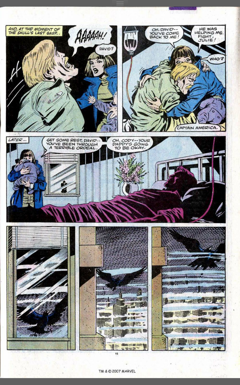 There’s also a subplot with a friend of Cap’s being in a coma, but then comes to only at the point of the Red Skull’s death.
