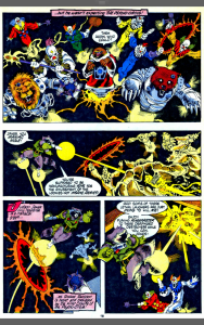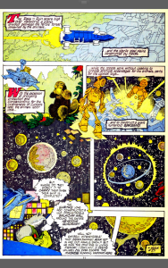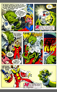 Notes: Cute animals, social commentary and action to the level of ridiculous, of course I loved this comic. The whole bonkers concept of a planet sized insane asylum, where the inmates are left in the care of sentient animals and the treatments are treated like religious rituals. There’s so much to love. It’s narrative is very sword and sorcery with sci fi elements in it, with all the characters taking the whole thing so very seriously as the plot involving two companies at war can do. There’s silliness aplenty and there’s a charm to the whole thing. Mantlo’s scripting matches perfectly and the less stylised pencils of Mignola are crisp and exciting.