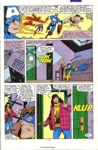 Synopsis: Captain America #307 was written by Mark Gruenwald with art by Paul Neary and Dennis Janke and opens with Captain Britain carrying Captain America to catch a flight back to the US from England, where after Cap gets on the flight for free with his Avengers ID, tries to avoid talking to a WWII veteran sitting next to him. That’s all the Cap we get this issue, seriously. That’s it and the rest is about Cap’s girlfriend Bernie Rosenthal and his room-mate Jack ‘Nomad’ Munroe who was the sidekick to the 1950’s Captain America.