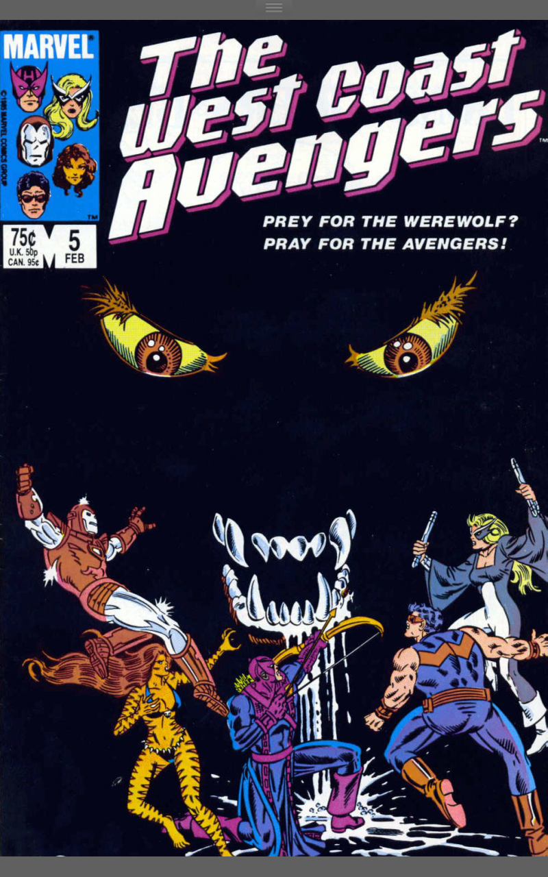 Synopsis: West Coast Avengers 5 was written by Steve Englehart and pencilled by Al Migrom and inked by Joe Sinnott and opens with Simon ‘Wonderman’ Williams getting a telling off by Clint ‘Hawkeye’ Barton about his recent on-air confession of his guilt in the embezzelment from his own company years earlier. Without informing the Avengers ahead of time, it has put the team in an awkward position. Sides are chosen with Greer ‘Tigra’ Nelson siding against Clint, with Tony ‘Iron Man’ Stark again Simon with Bobbi ‘Mockingbird’ Morse supporting Clint also, but acknowledgement soon comes that he’s being an ass.