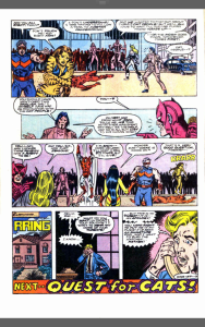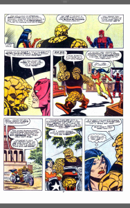 On a more serious note, the character of Tigra is something that Englehart really goes to town with. Unlike the constantly changed Thing, or the one then the other Jack Russell, Tigra is a blending of cat and lady so she very much has access to her full memory and personality, but has hard-wired impulses and instincts that a very much feline. This leads to impulsive behaviour, particularly in relationship to men. One one scene he’s appalled by her pouncing on Wonderman but later isn’t so worried when Mockingbird offers to help her as she had asked. This is interesting stuff and highlights the strength of these teams books. Tigra isn’t enough to headline her own comic, but shines in this setting as indeed does Hank Pym. The only character that feels less than is Iron Man, who portrayed halfway between elitist ass and horny teenager, but without the nuanced manner that would come later thanks to Robert Downey Jnr.