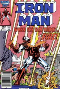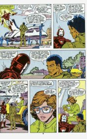Back in California, Tony is back on earth and meets with James Rhodes about their contract to transport the cargo for a Targo corp. Tony tries to get Rhodey back into the Iron Man armour, but Rhodey’s having none of it. He’s happy enough to be a pilot helping get the cargo into space and his job helping on the business side with his partners Tony and Clymenestra Morely, who just shows up to quit to get another job tracking Halley’s comet. Later Rhodey flies the company shuttle into space and he and Iron Man help put Targo corp’s satellite into it’s orbit. Little did they pair know, but Targo is a front for AIM and it’s Tykkio’s orbital lens weapon that they positioned, once they have done it, AIM activate it and it fires on Boca Caliente.