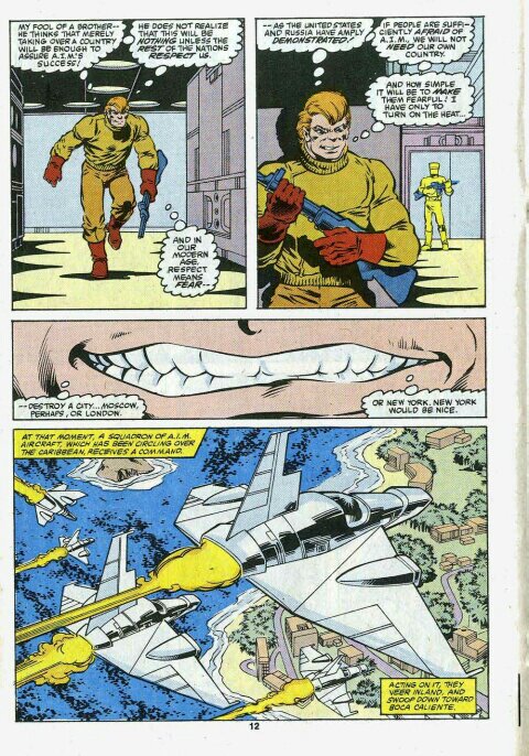 Back with AIM, Yorgen escapes and starts fighting his way towards command of AIM, just as AIM vehicles seize control of the devastated nation of Boca Caliente. Iron Man however sees the danger the weapon represents to the whole world and battles with the satellite’s automatic defence systems and eventually destroys the whole thing. He’s now determined to bring AIM to justice as they become the government of Boca Caliene.