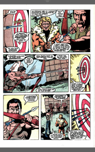 I should say that this is where we get to the villain of the piece, but I’m finding it hard to find the good guy here, so let’s call him the master criminal? The ‘Foreigner’ (yes, that’s what he’s called) is practicing his archery before he is interrupted by Victor ‘Sabretooth’ Creed, the two bicker about the Foreigner being unavailable. I mean it’s just lover’s tiffs a-go-go here today. The Foreigner also shuts down Creed’s attempt to join his group of assassins, pointing out how conspicuous a huge beast of a man in lycra calling himself Sabretooth is. Back with the Black Cat, the lead thug is enjoying some non-consensual kissing, which leads to Felicia (rightfully) kicking all kinds of ass. The Gang falls quickly if not easily as she realises that her bad luck powers seem to be gone. Even so, she is able to leave and the thugs are nowhere near able to stop her.