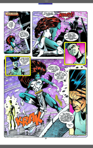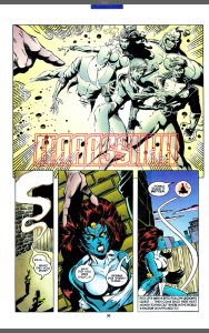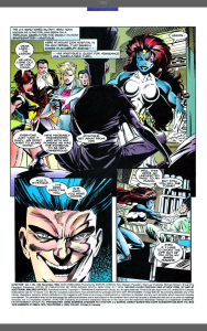 Ok, lets get some good out of the way, Mystique’s quest for vengeance is handled fairly well and her lashing out at anyone connected to , or protecting Legion makes a lot of sense, her love for Destiny is not made explicit, but is clear as anything. Legion being whole again is also handled well, his sense of guilt for the wrongs he did when unwell and his mother’s joy at seeing him whole are great and the art shows a very unusual looking Legion, all weird expressions and gawkiness. The whole premise of the story screams potential and drama and is at times gripping.