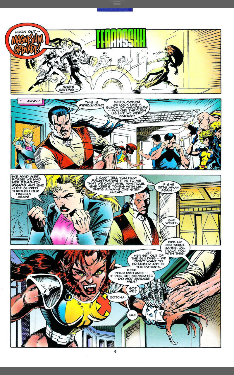 Cast: Rhane ‘Wolfsbane’ Sinclair, Forge, Valeria Cooper, Raven ‘Mystique’ Darkholme, Avalanche, Lorna ‘Polaris’ Dane, Guido ‘Strong Guy’ Carosella, Alex ‘Havok’ Summers, Gabrielle Haller and David ‘Legion’ Haller.