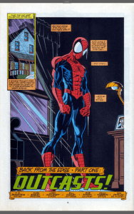 Notes: The worst enemies we have are the demons within us. While the clone has spent 5 years avoiding Peter’s life, the original Peter has lived that life and it really hasn’t been going too well lately. He’s now caught between his pain and his nostalgia. All being Peter has done is cause him and others pain, so he hides inside the mask of the Spider and tries to forget, but memories don’t go away, no matter how nicely you ask them to and pain is even harder to shift. Puma also feels the pain of his former life, despite not being cognisant of most of it. This is mostly lost on the characters in this book, but not on me. To see one of comics’ most hopeful and human characters become so cynical and divorced from his humanity adds a melancholy to this tale. DeMatteis excels at this kind of stuff, psychodrama both in and out of the self, my only issue with the writing is it neither explains what has turned him to this, nor indicate what it has to do with Nocturne. These cracks are painted over by the beautiful Mark Bagley artwork, which is perfect for Spider-Man, all slender figures and clean lines. It’s 90’s but that takes nothing from how well this story works, or how beautiful it looks. It’s not an incredible issue, but Damn, I’m intrigued.