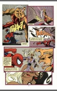 Notes: This issue feels a bit like a rescue mission for this story. DeFalco inherits a bizarre story with bizarre characters, one of which has an eleven foot wing span and the other is the result of a selective breeding program. (Okay, who or what do you breed with to get were-pumas?) The story quickly avoids focusing on the fight and instead it becomes about Spider-Man trying to save Nocturne. The parallels between the characters’ individual struggles is a little ham-fisted, but there is an attempt here to make it about something. That said, it’s a little difficult to take Puma seriously.