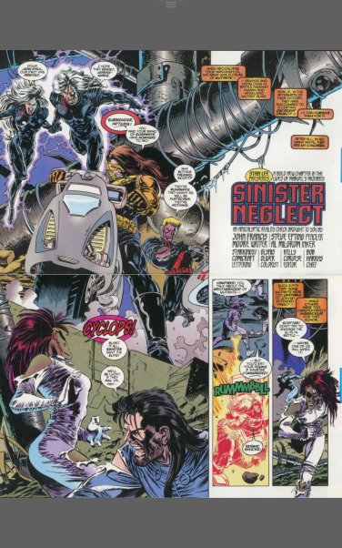 Plot: Sinister Neglect opens with Artemis, Pyro, Rictor, Newt and Phantazia escaping from the genetic experimentation pens of New York City, the stronghold of America’s ruler Apocalypse. The escapees are soon cornered by members of the Elite Mutant Force, including Aurora, Northstar, Havok and their field leader Cyclops.