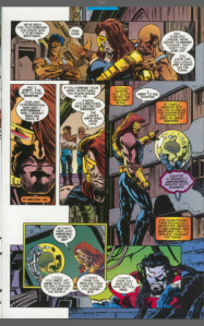 At the aforementioned nightclub, Havok stops by and asks questions of Angel, but really he’s there to see Scarlett, who starts singing, only for her performance to be interrupted by the human terrorist Henry Peter Gyrich. With the assistance of Terry and Jesse, Gyrich’s mind and machinery respectively malfunction and he is restrained with ease. Scarlett heads backstage, to meet her lover Havok.