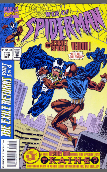 Then we get a scene in midtown, where a hired assassin called Kaine, flubs a job when he learns of the Scarlet Spider’s fight with Venom and instead kills his clients before leaving, but not before scarring one with raised veiny marks on his face.