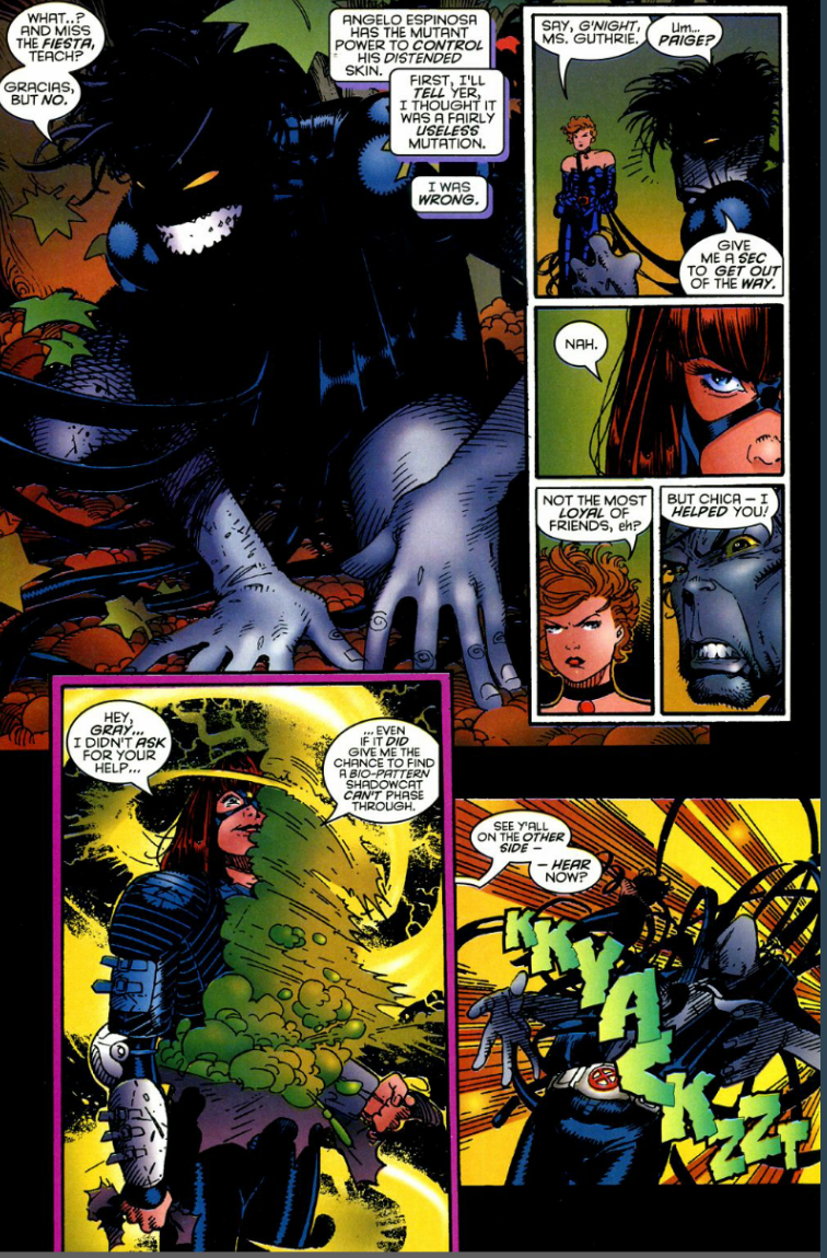 Cast: Jono ‘Chamber’ Starsmore, Paige ‘Husk’ Guthrie, Angelo ‘Skin’ Espinoza, Mondo, Know it All, Vincente, Piotr ‘Colossus’ Rasputin, Kitty Pryde, Erik ‘Magneto’ Lenscherr and Bishop.