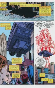 Deep inside the base, Magneto battles Gideon over the missiles. Back at Wundagore, Nemesis has arrived to destroy Magneto’s sanctuary and kill all of his students. He is opposed only by Scarlet Witch and an inexperienced Rogue.