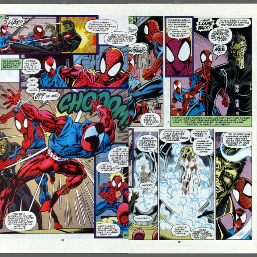 Overall 9 out of 10: From seeing both Spiders’ points of view, to the game changing revelations and the cool art. This was a great issue of this era. I genuinely didn’t expect to enjoy it so much and I guess after writing this, I realise that I did just go with it. Not all of the stories are this good and there’s some ropey stuff coming, but honestly this has got me back into the Clone Saga in a big way and I am looking forward to whatever comes next.