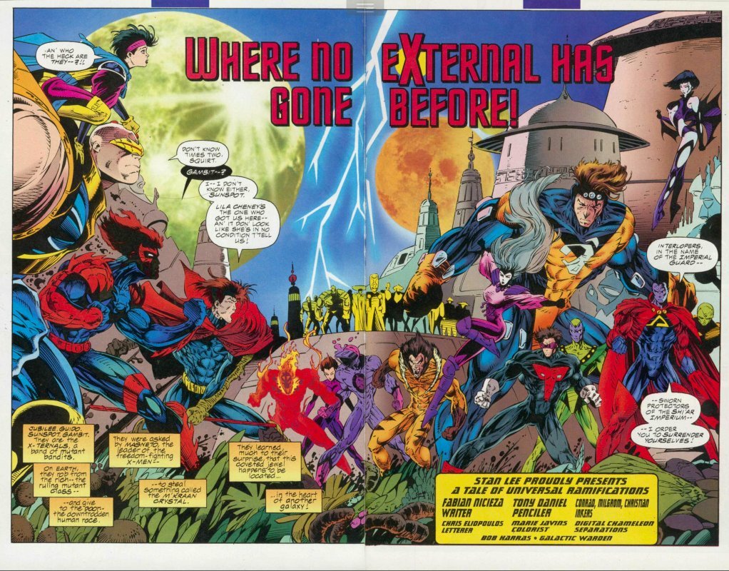 The X-Ternals are then teleported to a spaceship called the Starjammer, whose crew welcome them and tell Gambit that unless they complete their original mission, everywhere, even Earth will be destroyed by the M’Kraan crystal. Gambit then tries to be sincere.