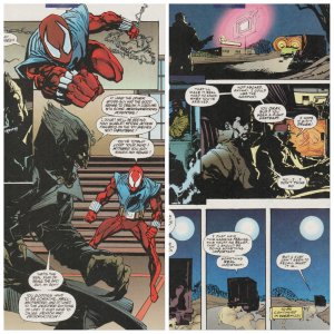 Plot: In the aftermath of the conflict at the Jackal’s lab, the man known only as Kaine is sifting through its wreckage to find definitive proof of who Peter Parker is and who is the clone of Peter. He finds an intact computer and produces the information he has been looking for. He is about to leave, when he sees a pod, similar to the ones the Jackal has used, inside it is another Peter Parker. He is then set upon by the Jackal, who has Jack with him. It gets violent, but that ends when Scrier appears, surprising Jackal (who knows Scrier, but is wasn’t expecting to see him) and terrifying Jack. Kaine uses this distraction to escape.