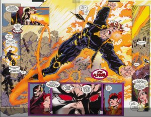 Art: 4 out of 5 – I enjoyed Steve Scroce’s work in the Cable title before X-Men Alpha and it continues to work here. His flourishes showing Nate’s powers and their differing uses work well and the garishness of it all is mostly to do with the colouring of the time. The design of the factory, the redesigns of Domino and Omega Red and the numerous splash pages showcase an art team that knows exactly what it is and runs with it. Yes there are serveral inkers, but Scroce’s style is such a strong presence that although you notice the changes, it’s never jarring enough to pull you out of the story.