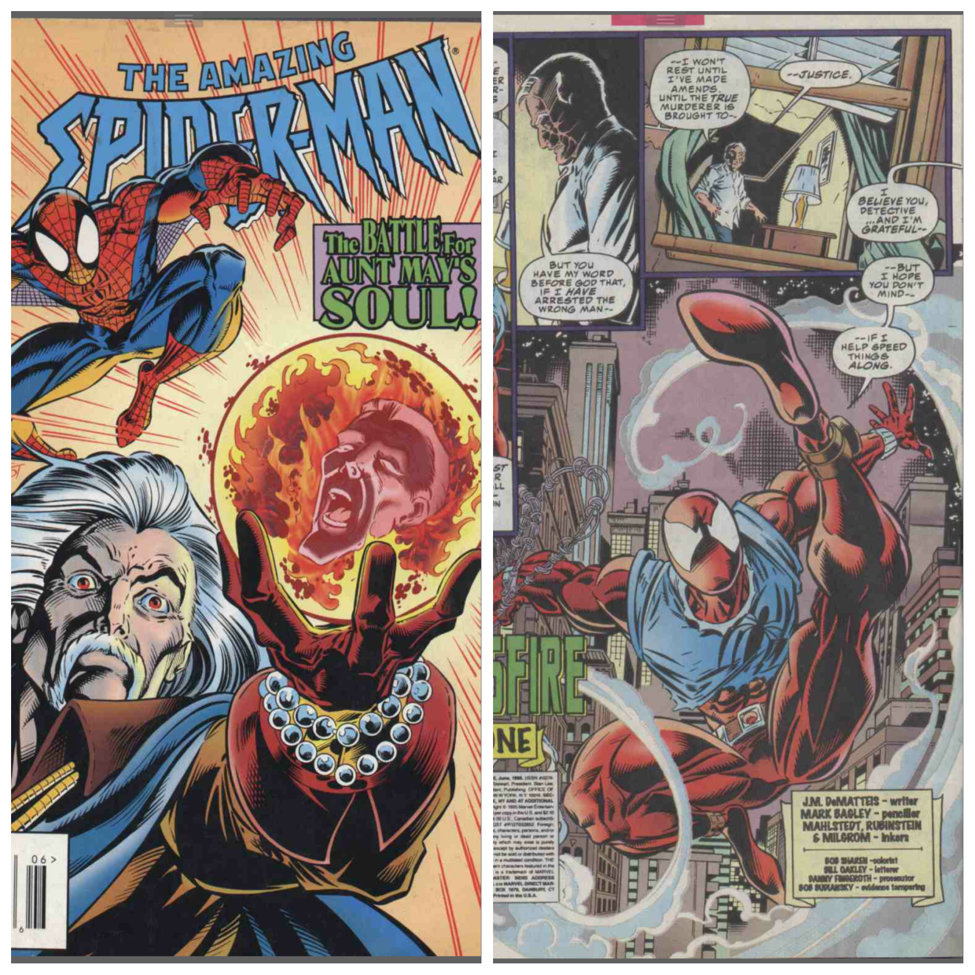 Credits: Written by J.M. DeMatteis, pencilled by Mark Bagley, inked by Larry Mahlstedt, Joe Rubenstein and Al Milgrom, the whole thing edited by Danny Fingeroth.