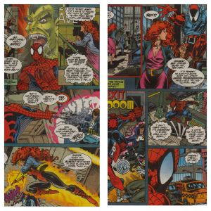 Notes: This is a solid conclusion to the story from Spectacular Spider-Man 228:, sort of finishing off the Jackal’s influence in the Clone Saga. A race against time to save MJ creates a tense story that sort of raises on distinct point that I should’ve had thought about before, but was quite glaring here. Scarlet Spider sounds like Spider-Man. Up to 5 years ago, they were the same guy, spoke with the same voice and the same mannerisms. This carried on, as Ben posed as Peter during the trial, so they still look and sound alike. So here’s the thing, when wearing their masks, they’d still kind of sound the same, So the same build, similar colour scheme and almost the exact same voice. Vance Astrovik, Angelica Jones and Robbie Baldwin (Justice, Firestar and Speedball, yes his name is speedball) have worked with Peter several times and when all of them were together no one mentioned it?