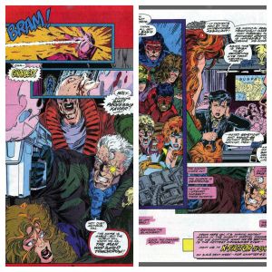 Art: 3 out of 5 – Whilst not spectacular, the art is solid, everyone is on model and the story-telling flows really well. The old-school colouring is more understated that it would soon become and the histrionics sort of match the circumstances, making the 90’s ness of it match the story.