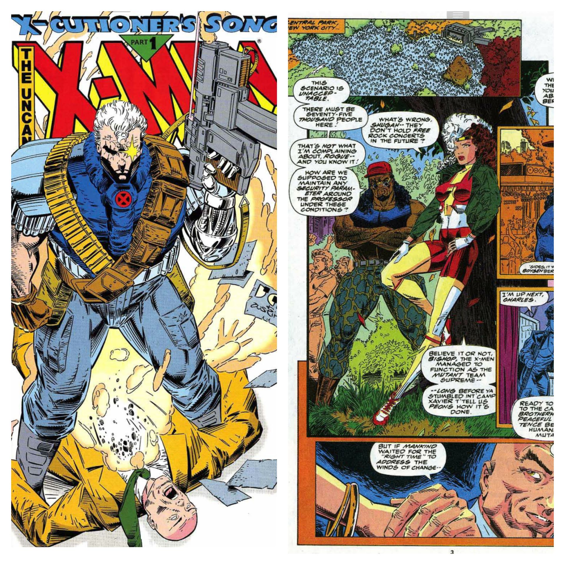 At the concert, a pair of anti-mutant bigots (part of a group that is unnamed) are attempting to set a bomb to kill Charles Xavier. They are killed by Cable, who talks of his intent to kill Charles himself. Later Charles makes an impassioned speech about tolerance, harmony and things like that, well it goes about as well as you think. Just as the booing intensifies, Charles is shot by Cable, who announces his name. He continues firing as Archangel flies at him. Cable body-slides (his version of teleporting) towards a place he calls Celebration, leaving the X-Men with a Charles Xavier near death.