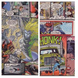 Notes: The New Warriors was a title from the earliest part of the 90’s and was a mix of new characters and older ones that didn’t have any place to go, this Team of the 90’s was all kind of young and edgy with new character Night Thrasher (a black skateboarding Batman) brought in Speedball, Firestar, Namorita, Marvel Boy and the Man called Nova, but that was 5 years ago. Team-mates start and leave and this story takes place during an era where Night Thrasher (no seriously, that was his name) had parted ways with the team, Namorita/Kymera had vanished and Rich Rider had been displaced as Nova. Still there was enough of the team to call themselves the New Warriors,.I have read the issues leading up to this, although a while back now and it was moving towards the 75th issue when the series would be cancelled. Around this time, Marvel had splintered their titles in a handful of mini-fiefdoms and I’m guessing New Warriors was handled by the Spider-offices, leading to greater co-ordination between these two different properties.