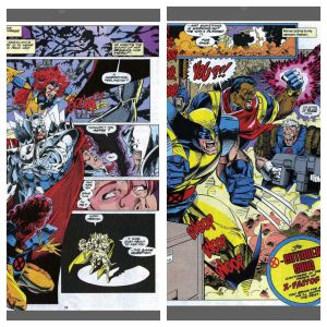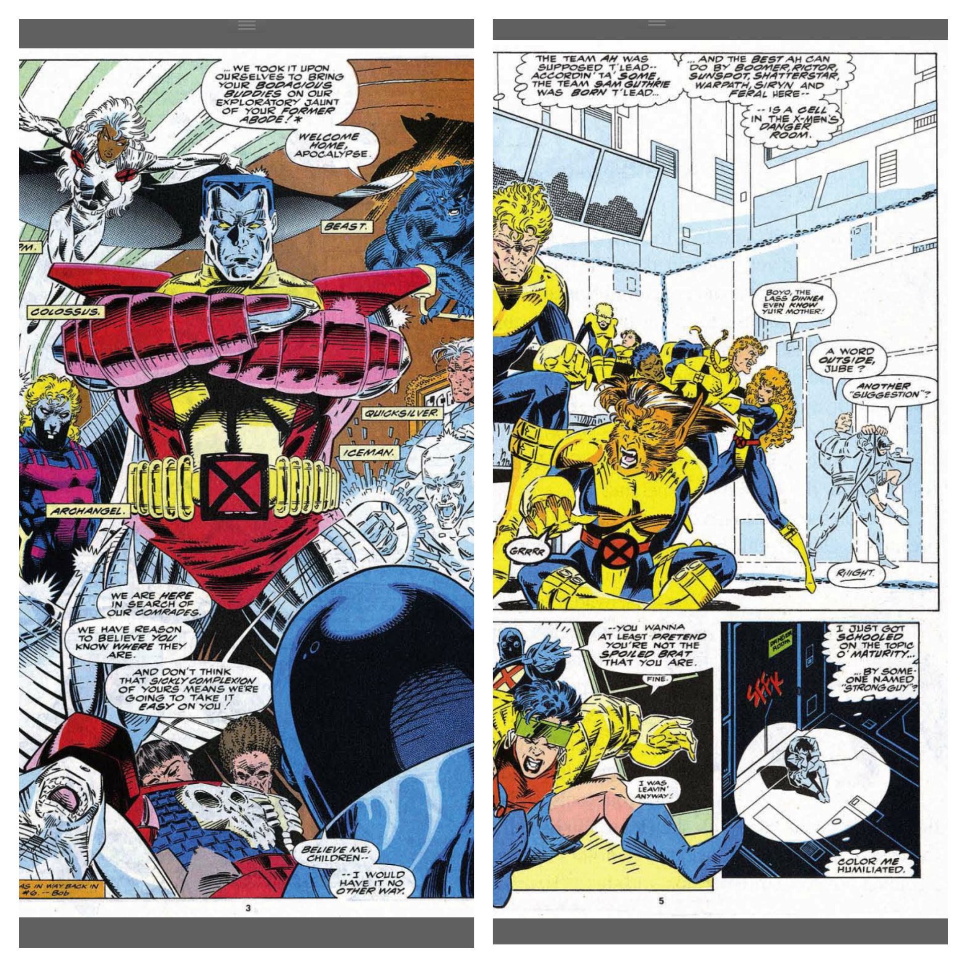 Notes: After Sinister’s departure from the plot in the last issue, now the focus gets moved to Stryfe, who is doing everything he can to out drama Darth Vader, Disney’s crown prince of dramatic themes. It sort of reminds me of Robin Hood: prince of thieves, where Alan Rickman plays the Sheriff of Nottingham as if he’s in a different flm. With one X-Team being successful, the other has it’s a**e handed to it by an Apocalypse who can barely stand, before he too gets interested in what’s going on. The issue is split between the quieter moments where the Mansion is taking a breath from the breakneck pace of the first few parts and the battle with Apocalypse. In between those pieces are the beginnings of whatever Stryfe’s endgame is, which seems to be some kind of thematic revenge on Scott and Jean, readers of the time had already had a guess or two about what was happening there, I know I had.