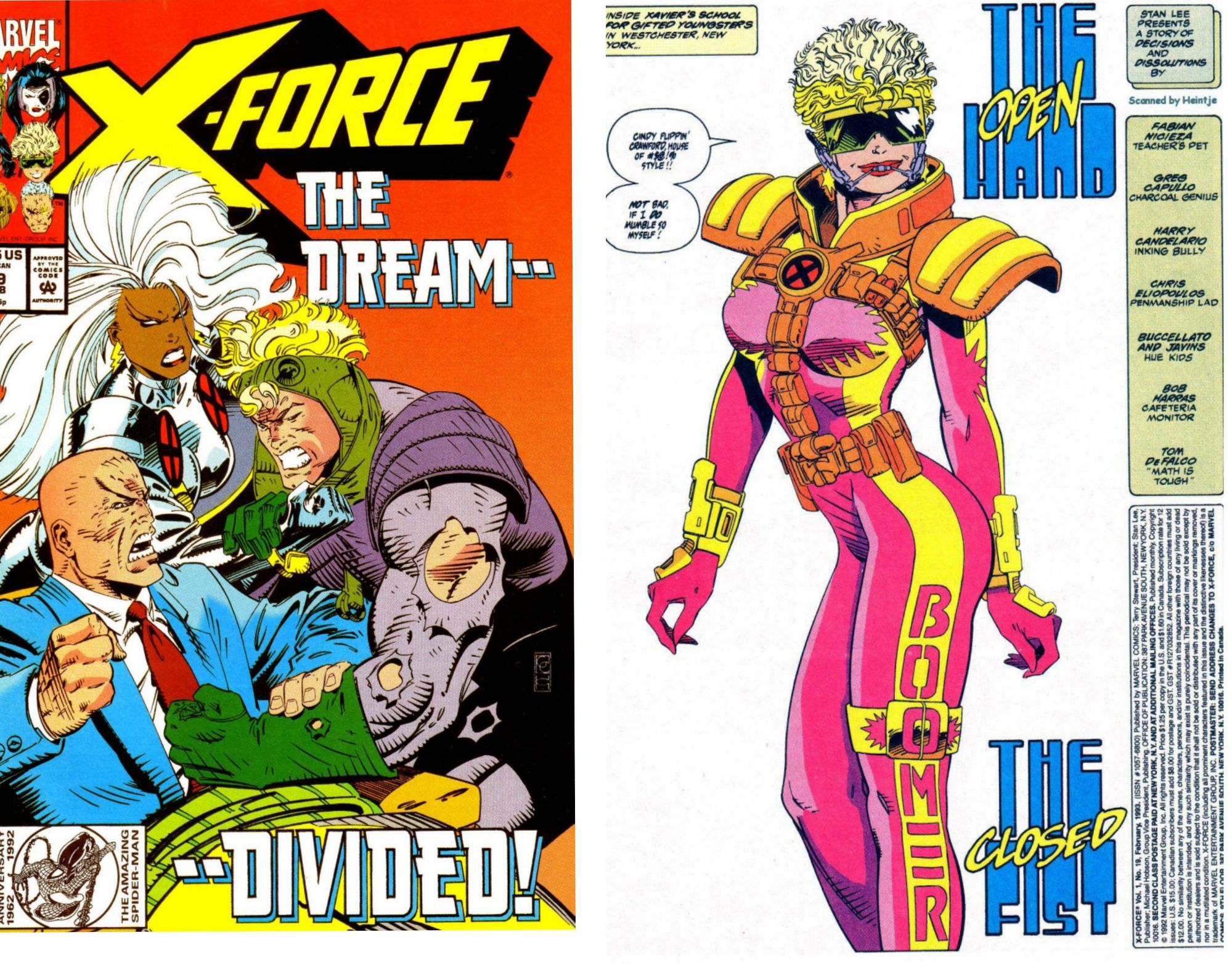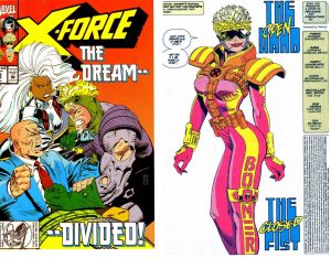 Plot: Following the events of the X-Cutioner’s son, the members of X-Force (former New Mutants Sam ‘Cannonball’ Guthrie and Roberto ‘Sunspot’ Dacosta, former X-Terminators Tabitha ‘Boom Boom’ Smith and Julio Esteban Rictor, former hellion James ‘Warpath’ Proudstar, and later additions Maria ‘Feral’ Callasantos, Theresa ‘Siryn’ Roarke and Shatterstar) are under house arrest at the Xavier School for Gifted Youngsters, under the watch of Professor Charles Xavier and Ororo ‘Storm’ Munroe. Boom Boom (trying to take her mind off her broken jaw being wired shut) is taking advantage by checking out all the Shi’Ar technology under the school, finding a clothes synthesizer and starts redesigning X-Force uniforms. In walks international rock-star, intergalactic rock-star and thief Lila Chaney (whose presence in this issue NOONE EVER EXPLAINS AT ALL!!!!) comes in to talk about Sam, the one thing they have in common and Lila’s ex. She points out that the only thing they have is history and if she wants Sam to go for it. Outside Roberto is struggling with all the changes he’s gone through, lies and experimentation and discusses it with his old PE teacher Stevie Hunter. It’s nice that a writer remembered she’s an actual character that can feature in X-titles. He points out that he doesn’t know what he’s going to do.