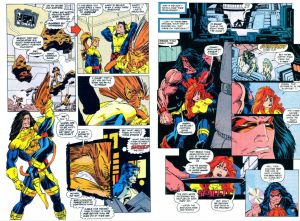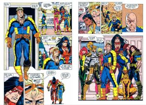 Verdict: Writing 5 out of 5 – Much like Lobdell, Fabian Nicieza tells a good aftermath story. This is a handful of conversations and a fashion show and you’re never bored. The conversation where Sam berates Charles over his feckless stewardship over the New Mutants, comparing it to driving shows how Fabian learned from Claremont, but has his own skills to add. The relative comparison of hurt/harm that X-Force does as opposed to X-Men is an excellent point that comes close to shattering the suspension of disbelief, but never quite does.