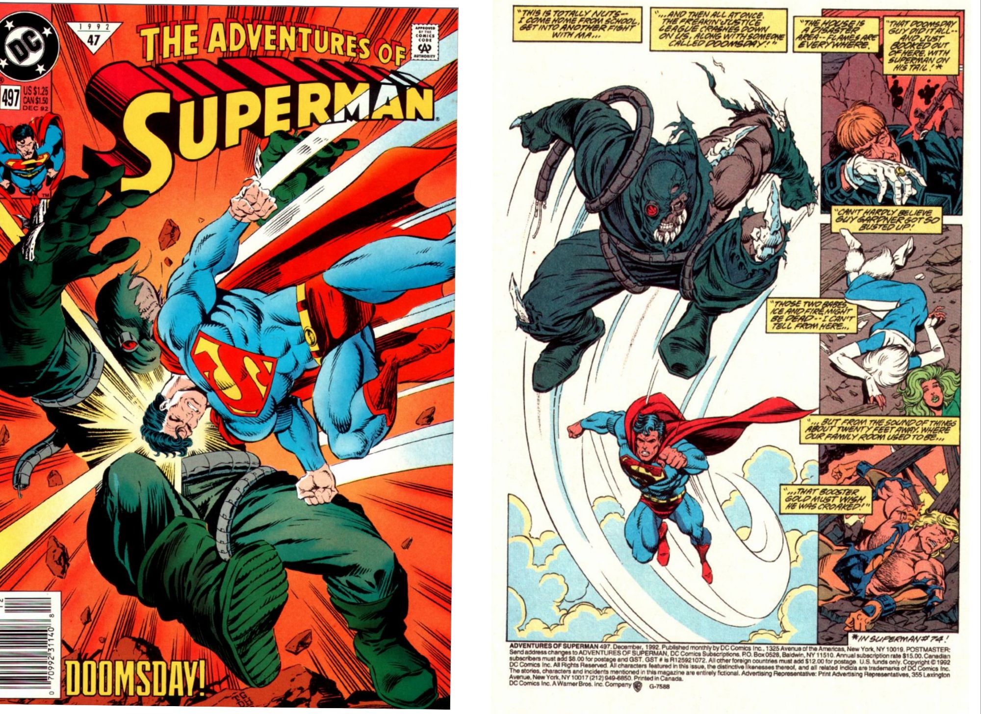 Maxima tries to stop the monster, but is as much a danger to everyone around her than Doomsday. Superman tries to keep her on point, but ultimately the battle causes a massive gas main explosion, knocking Superman and Maxima out. When Superman comes to, he is joined by Guardian, a clone of the golden age hero, currently working as security chief for Project Cadmus. Seeing all the harm done, Superman realises that he has to stop Doomsday and do so alone.