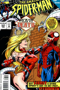 Credits: J M DeMatteis writer, Mark Bagley pencils, Larry Halsted in inks and edited by Danny Fingeroth. Cast: Peter 'Spider-Man' Parker, Daredevil (who apparently isn't Matthew Murdock?), Mary Jane Watson- Parker, her sister Gayle, Leland 'The Owl' Owlsley and Adrian 'The Vulture' Toombs. Plot: Two men in an alley are talking about a mutual … Continue reading Amazing Spider-Man 395: I can recognise your mouth, nose, chin and voice, what the hell?